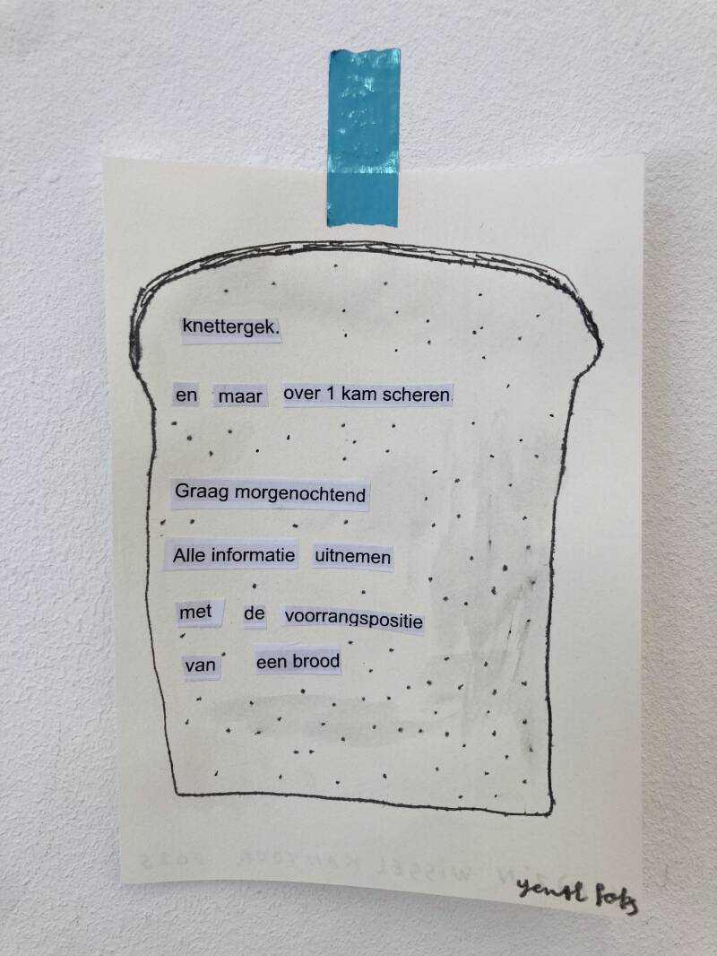 De vraag is zo leuk omdat er zoveel antwoorden als perspectieven op te vinden zijn. Omdat al die verschillende antwoorden me bleven intrigeren opende ik in de zomer van 2025 het ‘(On)zin Wissel Kantoor’ in het voorkamertje van Emmaweg 11, in Hengelo (‘Emma11 kunstplatform’, onderdeel van kunstinitiatief MIKC). Ik richtte er een tijdelijke werkplek in, hing een brievenbus op en zette de deur dagelijks open voor (on)zinnige zaken die binnen konden waaien op mijn kantoortijden van 12:00 tot 17:00.