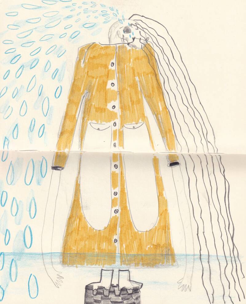 Waterig (2021) viltstift, potlood, Oost-Indische inkt, stempels